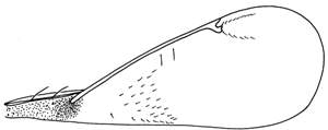 Setae on mesoscutum and scutellum short and weak, only 0.5X as long as distance between setae; fore wing speculum open below, and with two stigmal hair lines; first gastral tergite with a transverse edge between two lateral edges; head and mesosoma yellowish; mesoscutum and scutellum with strong and dense reticulation; FM/HM = 1.6; fore wing with two admarginal setae.