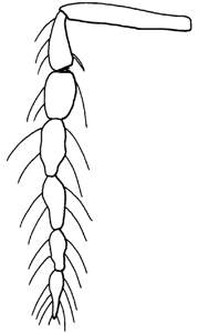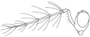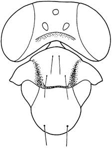 Female: antennal scrobes join below frontal suture; similar to languidiceps but with hairs on eyes curved at apex, with striations on scutellum; distance between anterior pair of setae on midlobe of mesoscutum shorter than between posterior pair. Male: ventral dent on scape situated at, or below the middle of scape; setae on flagellomeres verticillate.