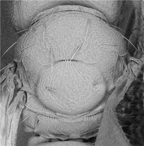 Malar sulcus present; upper frons and vertex inside ocellar triangle with strong reticulation; scutellum 0.8X as long as wide. Similar to jimenezi, differs in having frontal suture down curved laterally and with antennal scrobes joining closer to frontal suture.