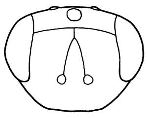 Malar sulcus absent; thoracic dorsum flat; pronotum reduced, hardly visible in dorsal view; scutellum 0.9X as long as wide; forewing hyaline. Similar to mediofasciata but with scutellum less transverse and with forewing hyaline.