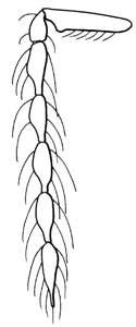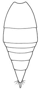 Malar sulcus present; thoracic dorsum moderately convex; scutellum as long as wide; propodeum with a groove along anterior margin and with longitudinal carinae in groove, without anterolateral foveae; forewing speculum open below; propodeum golden-purple between submedian carinae, metallic bluish-green laterad to carinae; propodeal callus with three setae; female petiole 1.4X as long as width of base, anterior part long and narrow (as in setifer), male petiole 2.4X as long as wide, widest in posterior ½ and gradually narrowing off towards anterior edge; female gaster lanceolate.