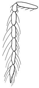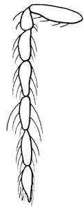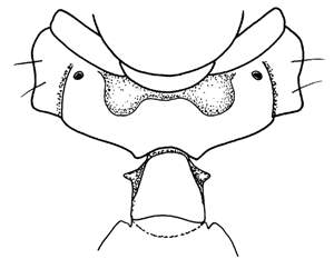 Vertex strongly reticulate inside and in front of ocellar triangle, smooth and shiny laterad to ocellar triangle; second gastral tergite large in both sexes, tergites 1+2 cover 0.8X the length of gaster in female, 0.7X in male. Similar to acuminata and eora, but with longer and more slender flagellomeres, hind margin of first gastral tergite smoothly curved backwards. Also differs from acuminata in having shorter apical ovipositor sheaths; and from eora through the following: antennal scrobes join closer to scrobes, malar sulcus is present, vertex is smooth and shiny laterad to ocellar triangle, occipital margin with carina, postmarginal vein is longer (1.0X as long as stigmal vein).