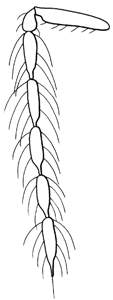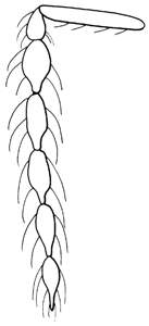 Flagellum slender and flagellomeres pedunculate, i.e. with anterior part narrow and ± elongate; occiput and temples covered with strong setae; malar sulcus missing; face with distinct tentorial pits; pronotal collar carina weak or missing; thoracic dorsum moderately convex to flat; scutellum as long as wide; female with fore coxa dark and metallic, mid and hind coxae pale non-metallic, majority of males with all coxae dark and metallic; propodeum with two large foveae anterolaterally.