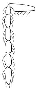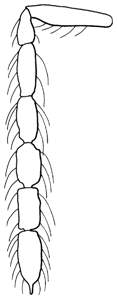 Flagellum stout; malar sulcus present, or weak and partly missing; thoracic dorsum moderately convex; scutellum 1.2X as long as wide; propodeum with two large anterolateral foveae, callus with 2-3 setae. Similar to articollum but without eye groove, with weak reticulation on frons, bare eyes, male scape yellowish-brown non metallic, postmarginal vein longer (PM/ST = 1.0), female with first gastral tergite longer (ratio length of first tergite/length of gaster rubii 0.6, articollum 0.3), shorter petiole (as long as width of base in female).