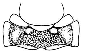Vertex with very strong small meshed reticulation inside and in front of ocellar triangle, smooth laterad to ocelli; propodeum with strong reticulation; 7th gastral tergite elongate, 3.4X as long as width of base.