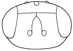 Head transverse (0.6-0.7X as high as wide); malar sulcus missing; thoracic dorsum flat; pronotum reduced and hardly visible in dorsal view; scutellum 0.7X as long as wide; mid and hind coxae yellowish-white; median 1/3 of fore wing infuscate. Very similar to mediofasciata, but differs in having mid and hind coxae pale non-metallic, and head more transverse. Also similar to ampliojo but with head transverse and with a longer distance between eyes at the level of frontal suture, malar sulcus missing, pronotal carina present (but very weak), scutellum slightly wider, median 1/3 of fore wing infuscate, without groove along anterior margin of propodeum; mid and hind coxae pale non metallic.