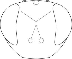 Antennal scrobes join below frontal suture; mesoscutum with engraved and weak reticulation; scutellum with engraved and weak reticulation; mesoscutum with midlobe golden-green, sidelobes metallic bluish-green, scutellum golden-green; propodeal callus with four setae; femora metallic bluish-purple; tibiae yellowish-brown; antennal clava strong, 1.7X as wide as width of 1st flagellomere.