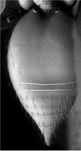 hansoni, but aistus with upper frons, and frons between antennal scrobes and eyes with weaker reticulation, gaster with first tergite with posteromedian ½ with weak reticulation.