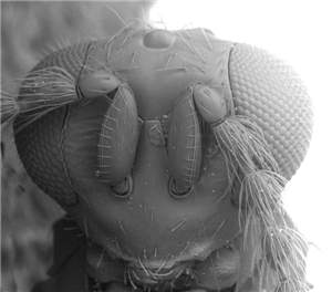 nilus, but amadeus with upper frons without two spots with strong reticulation, eyes larger, DE/DO = 3.9.< /FONT >