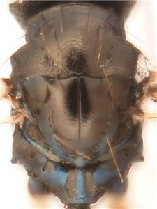 Mesoscutum and scutellum metallic dark purple, mesoscutum with raised and rather weak reticulation, scutellum with engraved and very weak reticulation, almost smooth; femora dark brown with metallic blue tinges; tibiae yellowish-brown; propodeum with submedian grooves reticulate; gaster with 1st tergite with elongate punctures in medioposterior ½. Similar to alnus but mesoscutum and scutellum metallic dark purple.