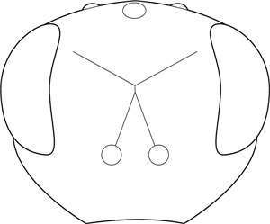 Antennal scrobes join below frontal suture; mesoscutum with engraved and weak reticulation; scutellum with engraved and very weak reticulation; mesoscutum black with metallic bluish-purple tinges, scutellum metallic dark purple; propodeal callus with four setae; femora metallic bluish-green, tibiae dark brown; propodeum with anterolateral foveas indistinctly delimited.