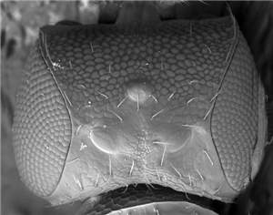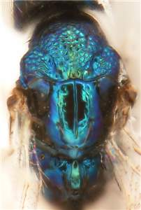 Scape with base narrow and apex strongly dilated; frontal suture situated low down on head, close to toruli; frons at level of toruli drawn out to a pointed tip close to eyes; scutellum smooth and shiny with very weak engraved reticulation; gaster with first tergite smooth and shiny.
