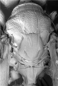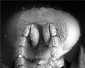 Flagellomeres 4-5 yellowish-brown; frons close to eyes hairy.