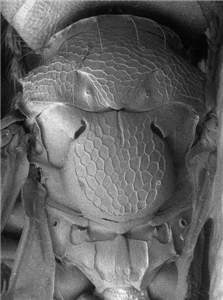 Scutellum with raised and strong reticulation with isodiametric meshes, with a short median groove anteriorly, but without lateral mesh-rows; frons with interscrobal area and part just above frontal suture smooth and with remaining parts with weak reticulation; propodeal callus with 3-5 setae. See also calamus.