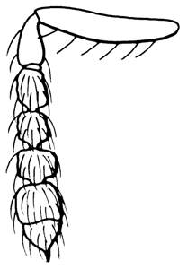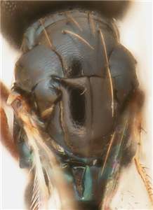 Antenna with a strong clava, 1.4X as wide as width of first flagellomere; mesoscutum black with metallic tinges to golden-green, with raised and weak reticulation, midlobe with posterior ½ with engraved reticulation; notauli distinct throughout and curved posteriorly; scutellum metallic dark purple to golden-green, with engraved and weak reticulation; propodeal callus with four setae; female gaster elongate, MM/LG = 0.6. Similar to corynipher but with antennal scrobes joining frontal suture separately.