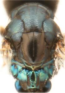 Antennal scrobes join below frontal suture; mesoscutum with raised and rather strong reticulation; scutellum with engraved and weak reticulation; mesoscutum dark golden-green, scutellum metallic dark purple; propodeal callus with three setae; femora metallic bluish-green; tibiae yellowish-brown. Similar to nigrocyaneus but midlobe of mesoscutum with raised reticulation. Also similar to lius, differs in having very weak reticulation on scutellum and a shorter petiole.