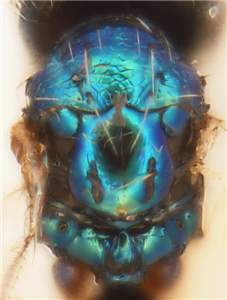 Eyes large, DE/DO = 3.8; frons narrowest at level of toruli; scutellum smooth; gaster with first tergite smooth; small species, 1.2 mm. Similar to cetiops, differs in having first gastral tergite completely smooth, antennal scrobes that join frontal suture separately, and median propodeum different (median carina wider and submedian grooves narrower); also similar to discus, differs in having reticulation on mesoscutum raised and with larger meshes, propodeum with submedian grooves partly reticulate, mesoscutum and scutellum metallic bluish-green.
