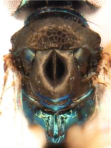 Coxae yellowish-white to dark brown with metallic tinges; eyes large, DE/DO = 4.0; occipital margin with an edge behind ocellar triangle; mesoscutum with large-meshed, raised and strong reticulation, scutellum smooth and shiny; female gaster elongate and acuminate, MM/LG = 0.6-0.8, with first tergite smooth. See also salius.
