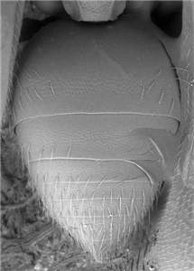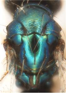 Antennal scrobes join below frontal suture; eyes large , DE/DO = 3.7; scutellum smooth and shiny or partly with engraved and very weak reticulation; petiole long, LP/WP = 2.0; first gastral tergite with a reticulate band close to posterior margin. See also patus.