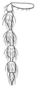 dulcis, but ninus with a longer flagellum, ratio length of flagellum/length of scape = 3.0 and with flagellomeres distinctly pedicellate; petiole 1.2X as long as wide< /FONT > .