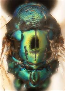 Eyes large, DE/DO = 3.6; female scape yellowish-white; mesoscutum and scutellum golden-green; mesoscutum with raised and strong reticulation; scutellum with engraved and very weak reticulation; femora yellowish-white; petiole 2.0X as long as wide; gaster with 1st tergite with strong striae in medioposterior part and with reticulation lateral to striae.