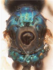 Midlobe of mesoscutum with posterior 1/3 with engraved reticulation; mesoscutum metallic bluish-green, scutellum metallic dark purple; female gaster short, MM/LG = 1.2, with apex rounded, first tergite smooth.< /FONT >