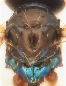 Scutellum with engraved and weak reticulation, median groove almost complete; propodeal callus with 3-4 setae; forewing speculum open below. Similar to lacticoxa but with coxae dark and metallic and femora pale brown, forewing speculum open below, female gaster longer, MM/LG = 0.6-0.7.< /FONT >