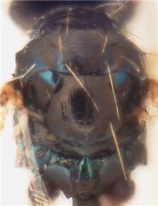 Midlobe of mesoscutum with posterior 1/3 with raised reticulation; scutellum with engraved reticulation; hind tibial spur long, LS/LT = 0.53. Large specimens of panamensis are similar to ticus and females are difficult to separate, but males can easily be separated through the shape of the scape being wider with largest width at base in panamensis.