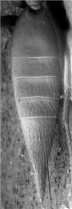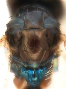 Head in frontal view triangular; notauli as narrow and distinct curved grooves in posterior ½; mesoscutum black with metallic blue tinges, scutellum metallic dark purple; female gaster long and acuminate, MM/LG = 0.5-0.7, with first tergite smooth.< /FONT >
