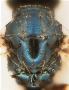 Female scape yellowish-brown; flagellum short with prominent longitudinal sensillae; mesoscutum and scutellum dark metallic bluish-green, mesoscutum with raised and rather strong reticulation, scutellum with engraved and weak reticulation; femora dark brown; female gaster short with a very large 1st tergite, 0.8X as long as length of gaster, first tergite with fine round punctures in posterior ½. Similar to sensillifer but with larger 1st gastral tergite and with fine punctures on same tergite.