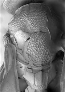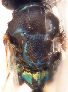 Scutellum entirely reticulate, reticulation raised, without median groove and lateral mesh-rows; propodeum with a narrow and strong median carina, LC/WC = 7.6; propodeal callus with four setae; forewing with speculum open below. Similar to esulcus but midlobe of mesoscutum with smaller meshes of reticulation than scutellum, larger eyes, scutellum with lateral and posterior margin metallic blue, and median carina on propodeum not raised.