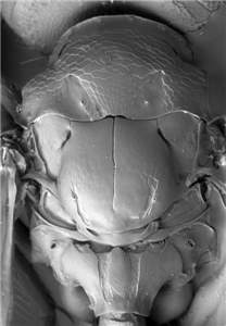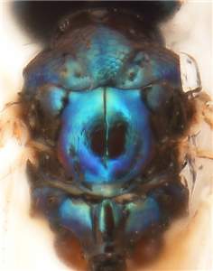 Antennal scrobes join below frontal suture; eyes large, DE/DO = 4.5; head ± triangular in frontal view; gaster with first tergite smooth.< /FONT >