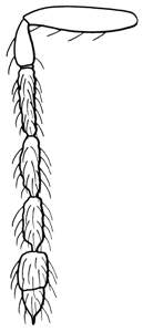 Scutellum with raised and strong reticulation, without lateral mesh-rows and with median groove indicated in anterior ½; head conspicuously triangular; antenna long and narrow; propodeal callus with four setae; petiole transverse, 0.6X as long as wide.