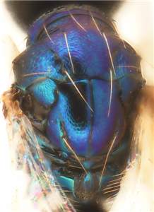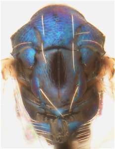 Mesoscutum and scutellum metallic bluish-green with purple tinges; mesoscutum with raised and rather strong reticulation, midlobe with posterior 1/3 with engraved reticulation, notauli as narrow and distinct grooves medially; propodeum with submedian grooves reticulate and with median carina with posterior 1/3 reticulate; female gaster long, MM/LG = 0.7. Similar to bryoscapus but with longer petiole and longer median propodeum.