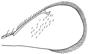Fore wing with area below marginal vein bare; coxae pale brown, remaining parts of legs whitish.