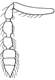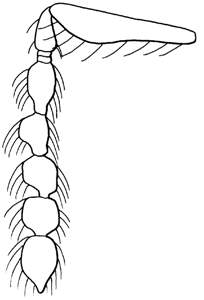 Mouth opening narrower than height of eye (ratio HE/MO= 1.5); marginal vein with a regular row of 10 strong setae along anterior margin; hind coxa with a thin tuft of hair on posterior surface; petiole 1.3X as long as width of base in female, 2.3X in male; first gastral tergite in both sexes with a row of setae (not a tuft) to either side of base of petiole.