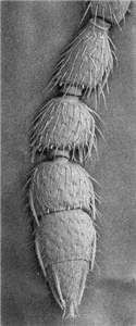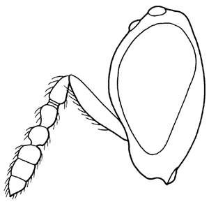Flagellomeres short and without longitudinal sensillae on ventral surface of claval segments; costal cell bare.