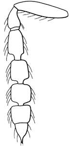 Antenna stout, with pedunculate funiculars; clypeus smooth while surrounding face is reticulate; scutellum entirely reticulate, meshes elongate and parallel; fore wing speculum open below; posterior margin of dorsellum tridentate; propodeum reticulate in posterior 1/2, with a narrow median groove that becomes wider posteriorly, submedian carinae along margins of median groove weak; petiole as long as wide; first gastral tergite with very weak reticulation in posterior 1/3, meshes isodiametric.