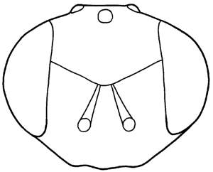 Scape, pedicel and legs pale (yellowish-brown); apical claval segment long, 3.3X as long as wide; meshes of reticulation on midlobe of mesoscutum large (8-9 meshes from anterior to posterior margin of mesoscutum); scutellum with elongate meshes, smooth in posterior 1/3; posterior margin of dorsellum tridentate; propodeum with a narrow median groove, submedian carinae weak; petiole 1.3X as long as wide; first gastral tergite smooth.