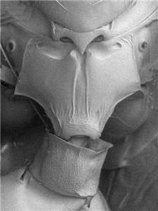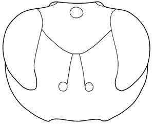 Flagellomeres I and II more slender than subsequent flagellomeres; temples large; scutellum with engraved reticulation, meshes elongate and diverging posteriorly, medioposterior 1/4 smooth; posterior margin of dorsellum tridentate; propodeum with a median groove, submedian carinae along margins of groove weak; propodeal callus with two long setae ("ordinary setae") and with 3-4 shorter setae anterolaterally to these setae; petiole as long as wide; first gastral tergite reticulate in posterior 1/3, meshes isodiametric.