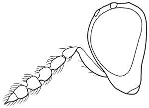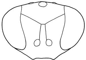 Mouth opening narrow, narrower than malar space; scutellum completely reticulate, meshes elongate and parallel in anterior 2/3, isodiametric in posterior 1/3; posterior margin of dorsellum ± tridentate (teeth weak); propodeum with a narrow median groove, becoming slightly wider posteriorly, submedian carinae weak; petiole 1.2X as long as wide; posterior 2/3 of first gastral tergite with strong reticulation, almost striate.