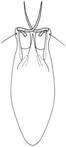 Paramere long, narrow and sinuate, with a strong, long and curved seta at apex and with a weak seta subapically; digitus 1.6X as long as wide, with a strong spine subapically.