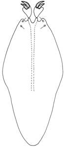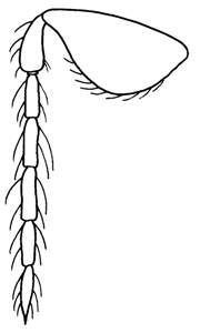 Scape wide, 2.0X as long as wide; paramere only slightly protruding, with two subapical setae which are equal in length; digitus 1.2X as long as wide, strongly narrowed off towards base, with two strong spines, these situated close and touching, outer spine slightly smaller than inner spine.