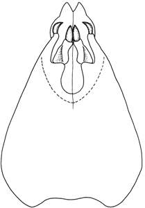 Scape semiwide, widest in median part (as in penicillatus); paramere strongly protruding, with a strong spine at apex; digitus 1.5X as long as wide, with a strong spine at apex; parameral plates protruding in front of parameral and digital spines; phallobase triangular, widest at base.