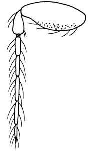 Scape wide, widest in median part, 2.2X as long as wide, inner surface smooth with punctures along ventral part, outer surface smooth and shiny; paramere slightly protruding, acute apically, parameral setae thin and short; digitus about as long as wide, narrows off towards base, outer spine very small, inner spine strong and bent outwards.