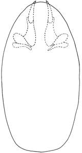 Paramere not distinguishable; digitus hidden inside phallobase, elongate and bent with a strong spine at apex; phallobase rounded at both ends.