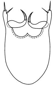 Paramere strongly protruding, with more or less parallel lateral margins and with apex rounded, with a strong seta at apex and an equally strong seta subapically; digitus 2.8X as long as wide, with a spine at apex.